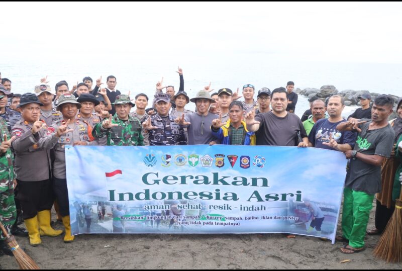 TLii|Aceh|Lhokseumawe – Polres Lhokseumawe bersama unsur TNI, pemerintah daerah, dan relawan menggelar gotong royong massal membersihkan Pantai Ujung Blang dan Pusong, Kota Lhokseumawe, Selasa (9/2/2026) pagi. Kegiatan ini merupakan bagian dari implementasi Gerakan Nasional ASRI (Aman, Sehat, Resik, Indah).