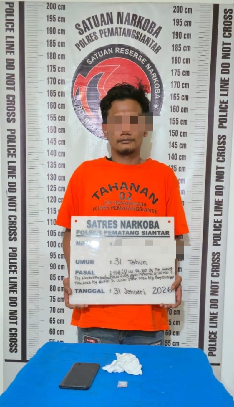 TLii | Sumut| Pematang Siantar – Satuan Reserse Narkoba Polres Pematangsiantar berhasil mengungkap kepemilikan narkotika jenis sabu di Jalan Gunung Simanuk manuk Kelurahan Teladan Kecamatan Siantar Barat Kota Pematangsiantar, pada Sabtu 31 Januari 2026 sore sekira pukul 17.00 WIB.