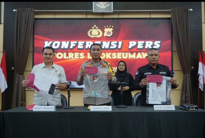 Penetapan tersangka tersebut disampaikan langsung oleh Kapolres Lhokseumawe AKBP Dr. Ahzan, S.H., S.I.K., M.S.M., M.H. dalam konferensi pers yang digelar di Gedung Serbaguna Polres Lhokseumawe, Kamis siang (5/2/2026). Kegiatan itu turut didampingi Kasat Reskrim Dr. Bustani, S.H., M.H., M.S.M. serta Kasi Humas Polres Lhokseumawe Salman Alfarasi, S.H., M.M.