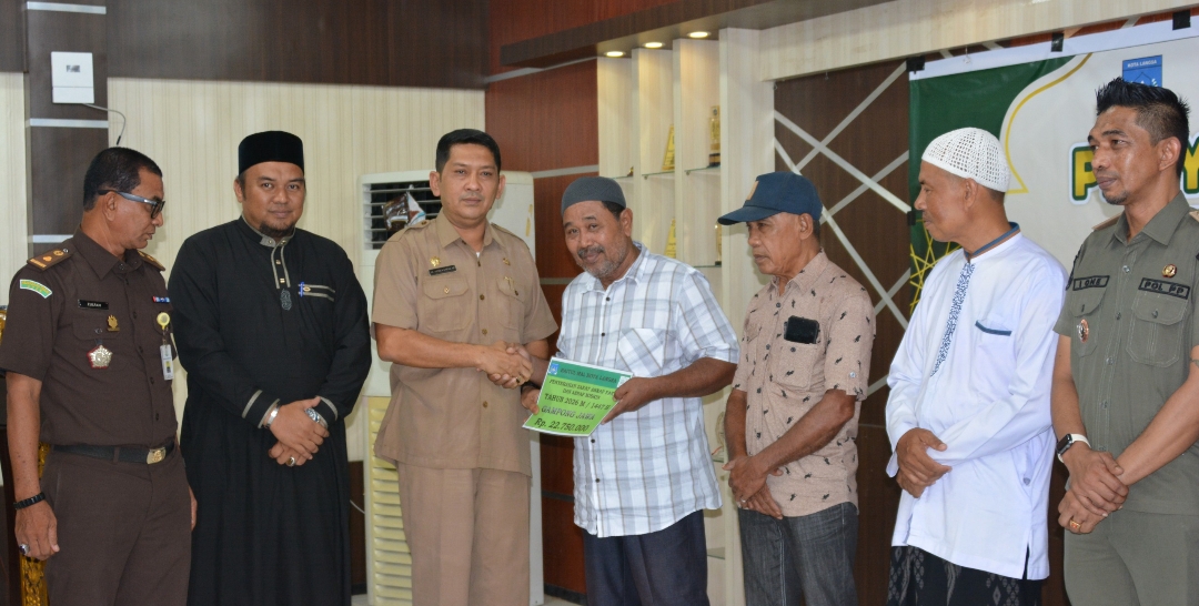 Foto bersama pada penyaluran Zakat Baitul Mal Kota Langsa di Aula Sekdakot Langsa, (Foto : Humas Diskominfo).