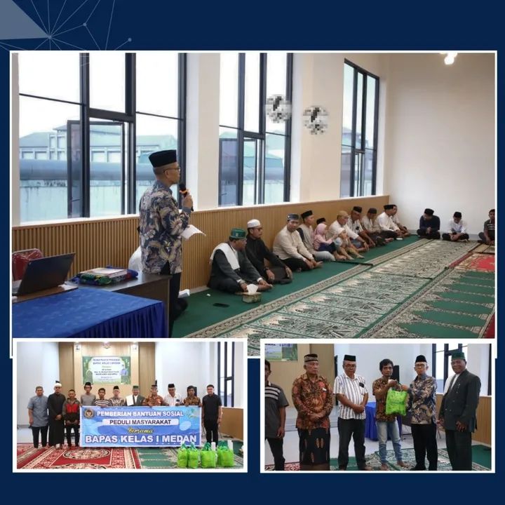 TIMELINES INEWS INVESTIGASI, Medan, 12 Maret 2026 Balai Pemasyarakatan (Bapas) Kelas I Medan melaksanakan kegiatan buka puasa bersama sekaligus penyerahan bantuan sosial yang berlangsung di Aula Bapas Kelas I Medan, Kamis (12/03). Kegiatan ini dihadiri oleh Kepala Bapas Kelas I Medan, Kriston Napitupulu, beserta jajaran pegawai, serta menghadirkan tausiah dari Al Ustadz Drs. H. Muhammad Yazid Mufti Lubis Almadina.
