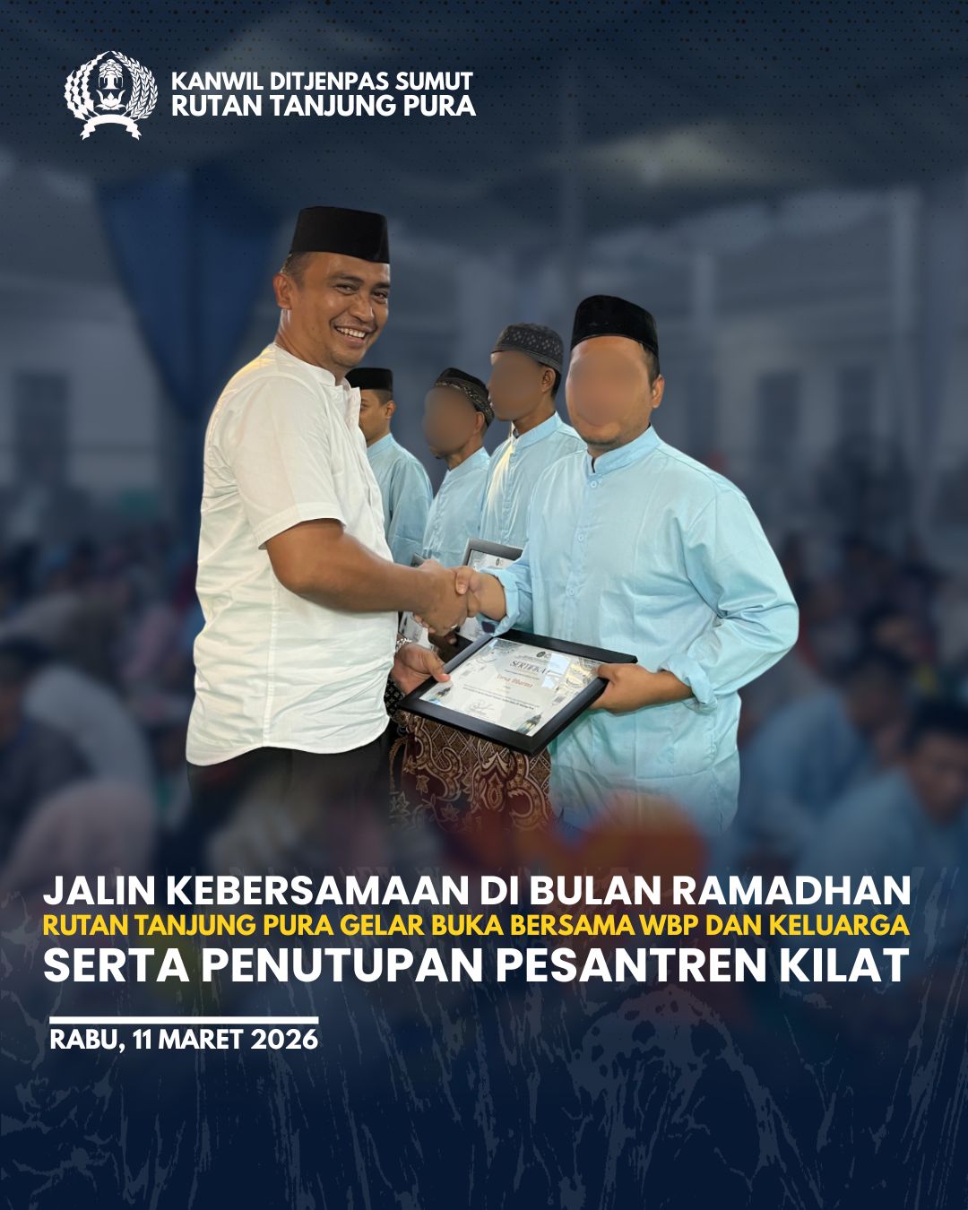 Kegiatan buka puasa bersama ini tidak hanya menjadi ajang silaturahmi, tetapi juga mencerminkan komitmen Rutan Tanjung Pura dalam menghadirkan pembinaan yang humanis, menyeluruh, dan bermartabat bagi warga binaan.