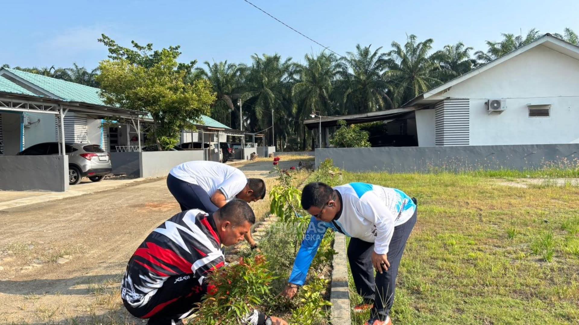 Selain itu, petugas juga merapikan tanaman agar terlihat lebih tertata dan estetis, serta memastikan saluran drainase di area luar kantor berfungsi dengan baik guna mengantisipasi terjadinya genangan air.