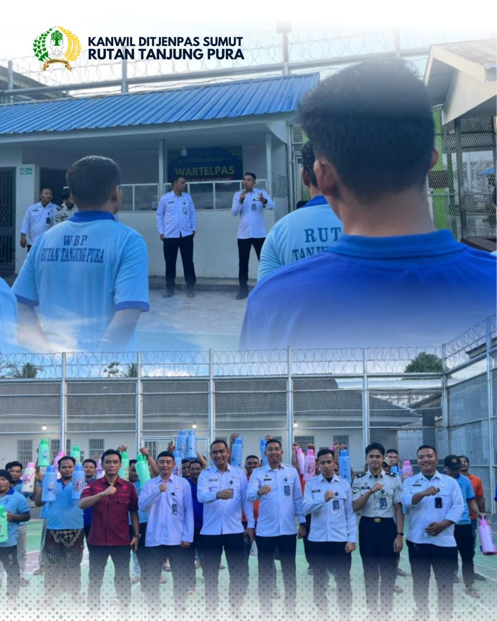 Kegiatan berbagi ini dipimpin langsung oleh Kepala Rutan Tanjung Pura bersama jajaran, yang turun langsung mendatangi kamar-kamar hunian untuk menyerahkan termos kepada para WBP.