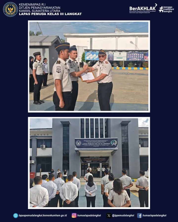 TIMELINES INEWS INVESTIGASI,  Langkat Lembaga Pemasyarakatan Pemuda Kelas III Langkat melaksanakan kegiatan apel pagi yang dirangkaikan dengan pemberian penghargaan kepada pegawai teladan, Senin (16/3/2025). Kegiatan ini menjadi bentuk apresiasi atas kinerja dan dedikasi pegawai dalam menjalankan tugas di lingkungan pemasyarakatan.