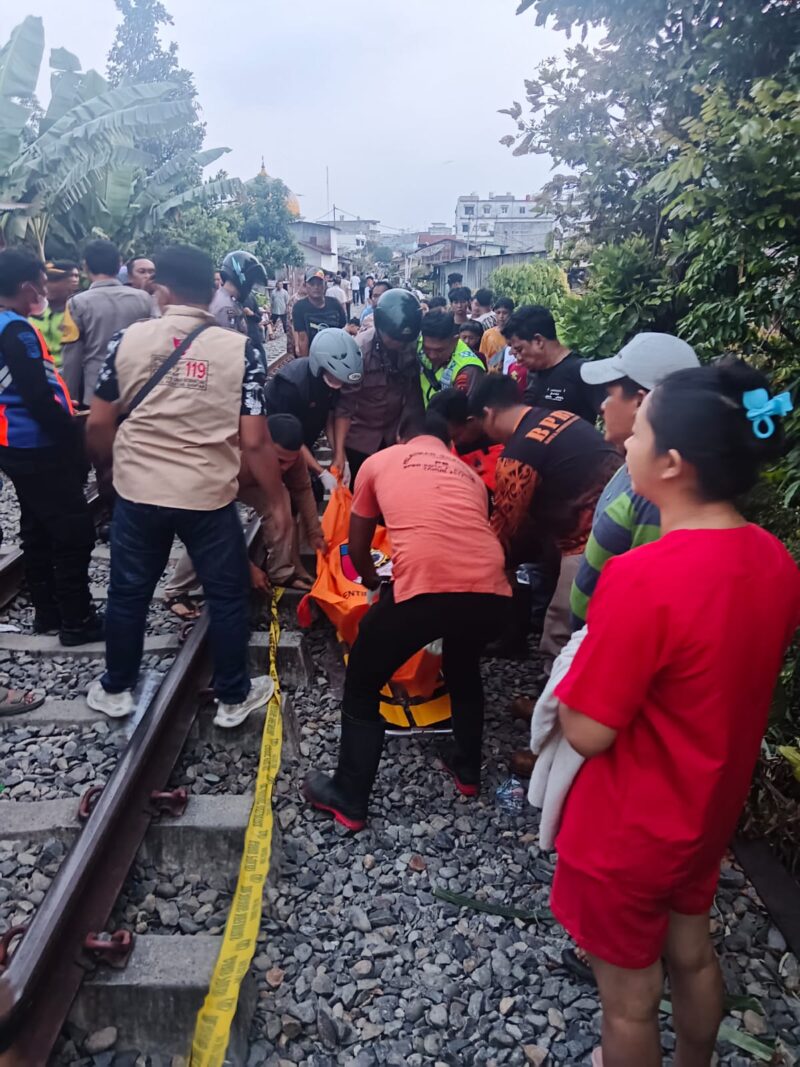 Kemudian kereta api tersebut diduga menabrak korban seorang wanita berinisial SD (45) warga Kelurahan Pardomuan Kecamatan Siantar Timur, Kota Pematangsiantar.