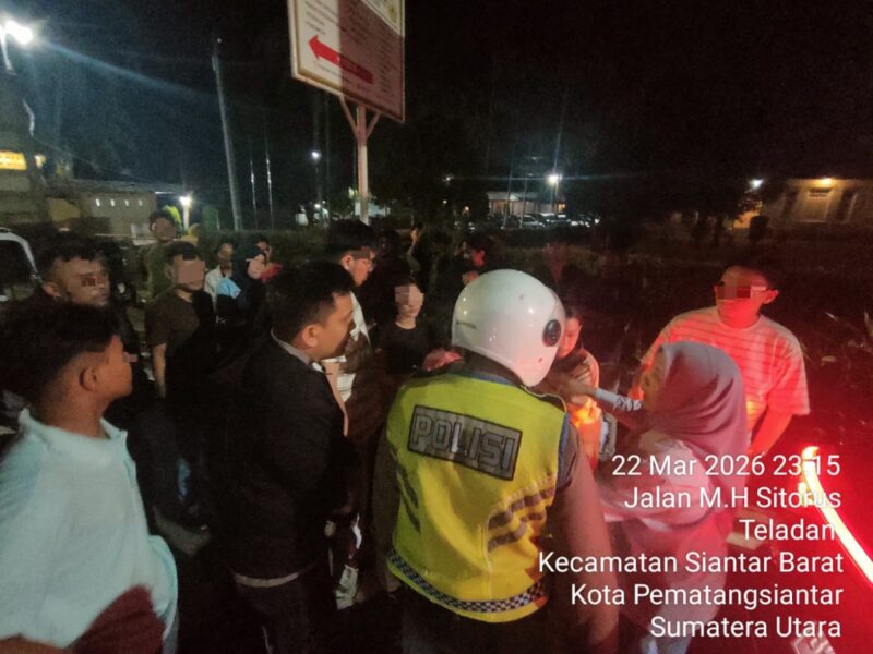 TLii | Sumut | Pematang Siantar – Polres Pematangsiantar melalui piket Pamapta respon cepat selesaikan adanya keributan di Jalan MH. Sitorus Simpang Jalan Gunung Simanuk Manuk Kelurahan Teladan Kecamatan Siantar Barat Kota Pematangsiantar dengan mediasi, pada Minggu 22 Maret 2026 malam sekira pukul 23.15 Wib.