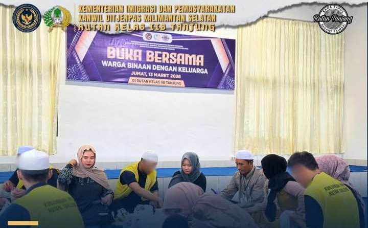TIMELINES INEWS INVESTIGASI, Tanjung Rumah Tahanan Negara (Rutan) Kelas IIB Tanjung menggelar kegiatan buka puasa bersama antara warga binaan dengan keluarga di lingkungan Rutan Tanjung. Kegiatan ini dilaksanakan di area kunjungan serta Aula G.G. Van Delft Rutan Tanjung sebagai bagian dari upaya mempererat hubungan kekeluargaan sekaligus menghadirkan suasana kebersamaan di bulan suci Ramadhan, Jumat (13/03/2026).