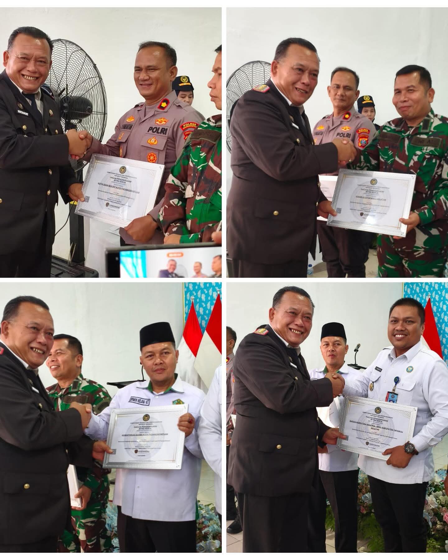 Adapun penghargaan mitra kerja terbaik diberikan kepada sejumlah instansi yang selama ini berperan aktif dalam mendukung pembinaan, pengamanan, dan pelayanan di Lapas, di antaranya Kodim 0212/Tapanuli Selatan, Polres Padangsidimpuan, Kementerian Agama Kota Padangsidimpuan, BNNK Tapanuli Selatan, Dinas Pendidikan Kota Padangsidimpuan, Dinas Pertanian dan Perikanan Padangsidimpuan, Dinas Koperasi dan UKM Padangsidimpuan, Satpol PP Padangsidimpuan, Dinas Kependudukan dan Catatan Sipil Padangsidimpuan, Dinas Kesehatan Padangsidimpuan serta BPJS Kesehatan Kota Padangsidimpuan.