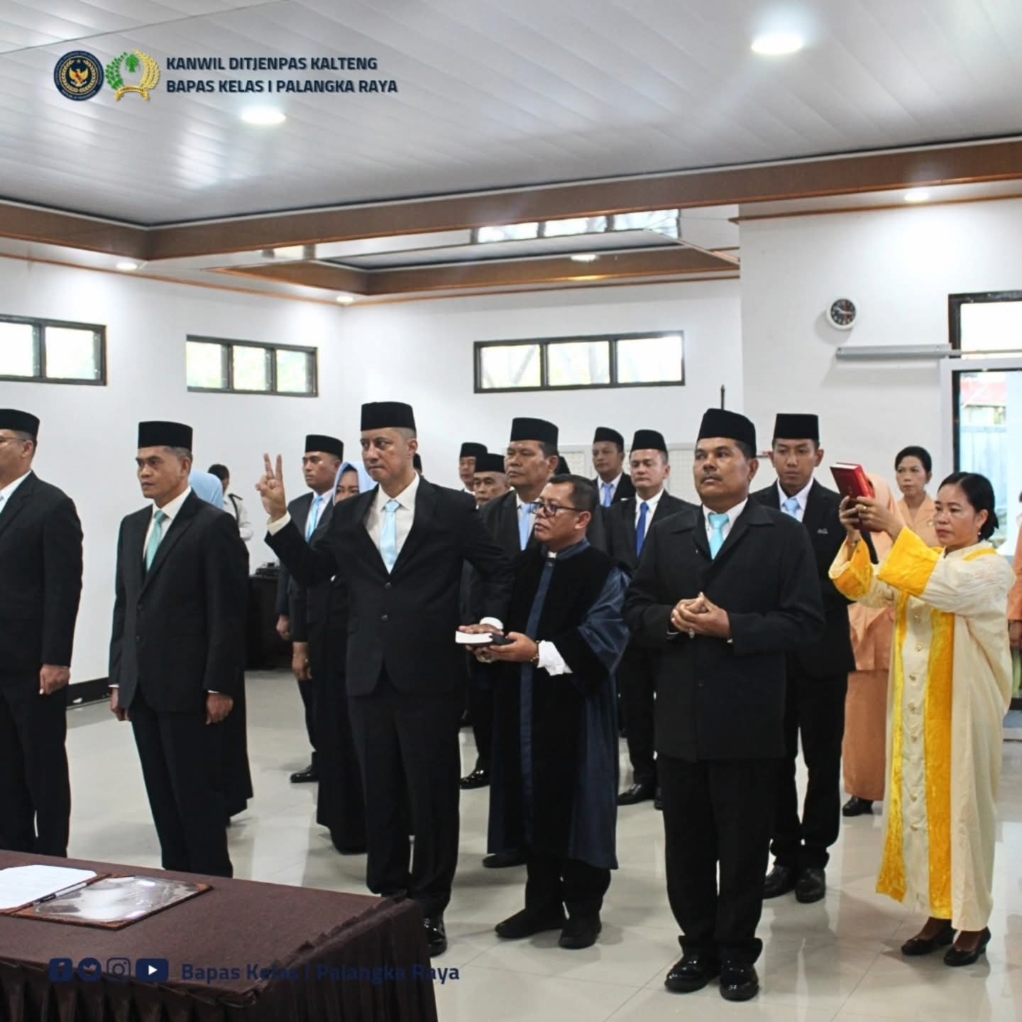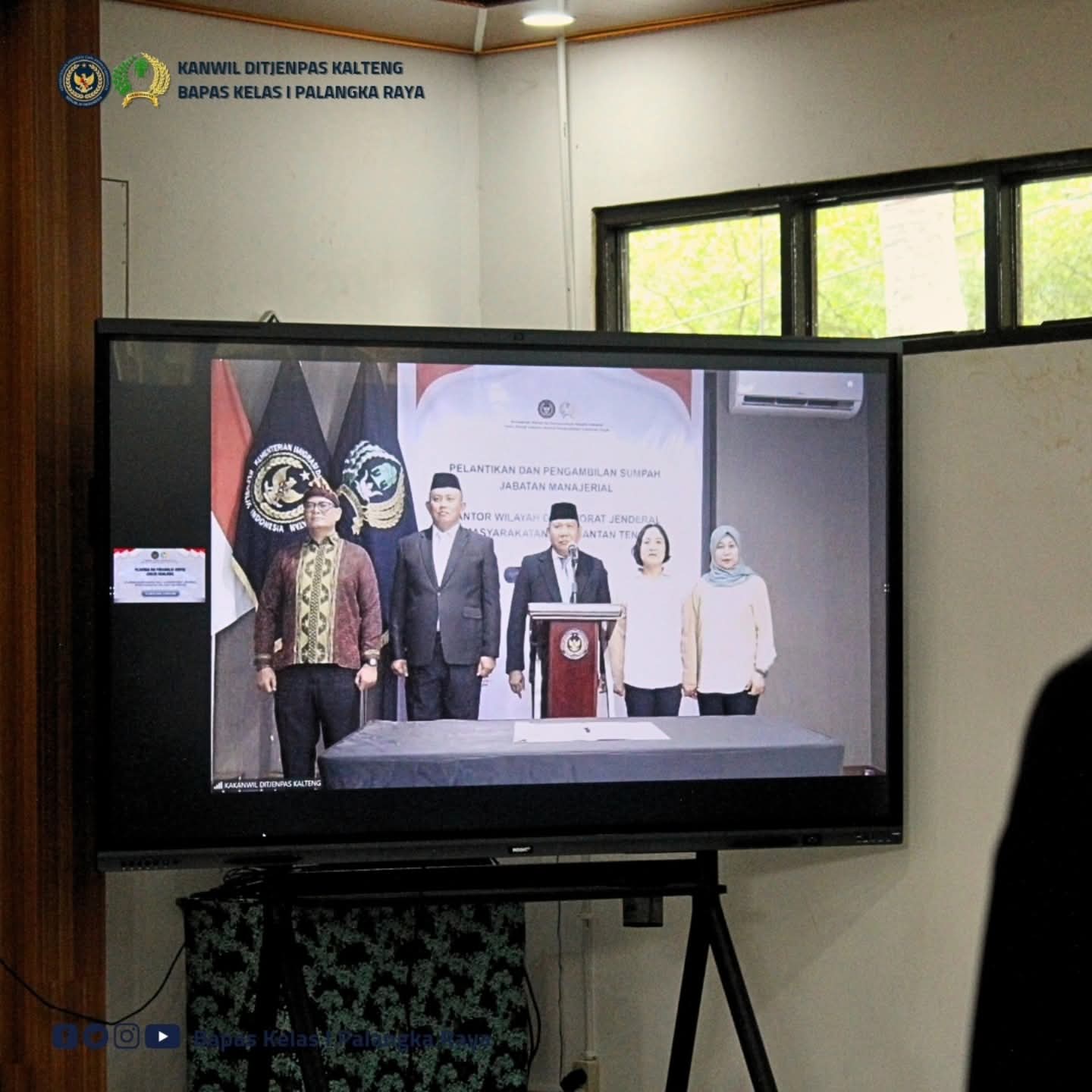 Pemasyarakatan (Bapas) Kelas I Palangka Raya menghadiri kegiatan pelantikan dan pengambilan sumpah jabatan pejabat manajerial di lingkungan Kantor Wilayah Direktorat Jenderal Pemasyarakatan Kalimantan Tengah, Selasa (14/04/2026).