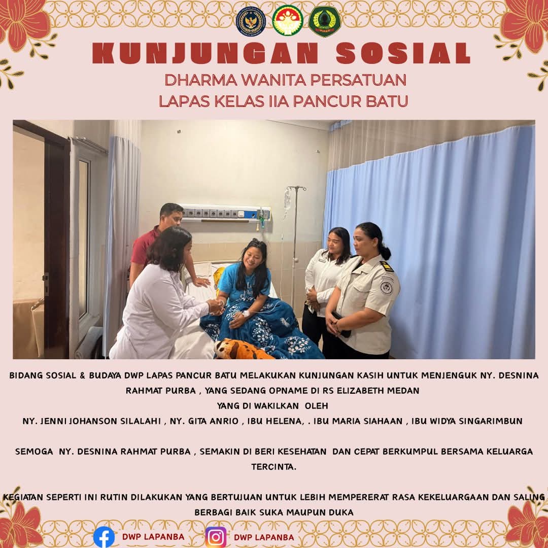 Kunjungan tersebut merupakan bentuk kepedulian dan solidaritas keluarga besar DWP Lapas Pancur Batu kepada anggotanya yang sedang sakit. Dalam kegiatan ini, kunjungan diwakili oleh beberapa anggota DWP, yakni Ny. Jenni Johanson Silalahi, Ny. Gita Anrio, Ibu Helena, Ibu Maria Siahaan, dan Ibu Widya Singarimbun.