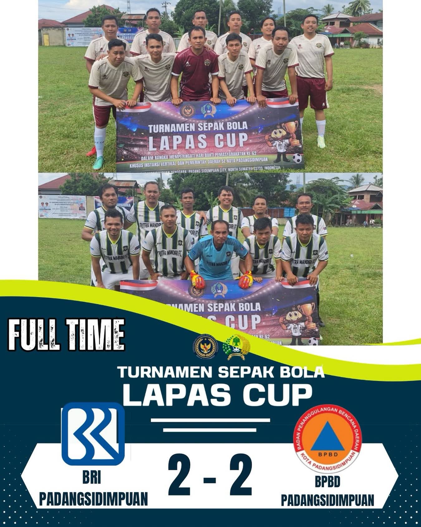 TIMELINES INEWS INVESTIGASI, Padangsidimpuan, Tim binaan Teuku Zulham yang mewakili BRI Padangsidimpuan harus puas berbagi angka setelah bermain imbang 2-2 melawan BPBD Padangsidimpuan dalam lanjutan turnamen Lapas Cup memperingati Hari Bakti Pemasyarakatan (HBP) ke-62.