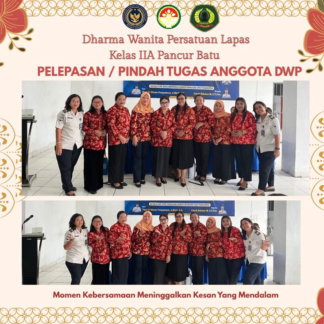 Dalam suasana yang sarat emosional, seluruh anggota DWP Lapas Pancur Batu menyampaikan rasa terima kasih atas dedikasi, kontribusi, serta semangat yang telah diberikan selama keduanya aktif berperan dalam berbagai kegiatan organisasi. Kebersamaan yang telah terjalin menjadi kenangan berharga yang tidak terlupakan.