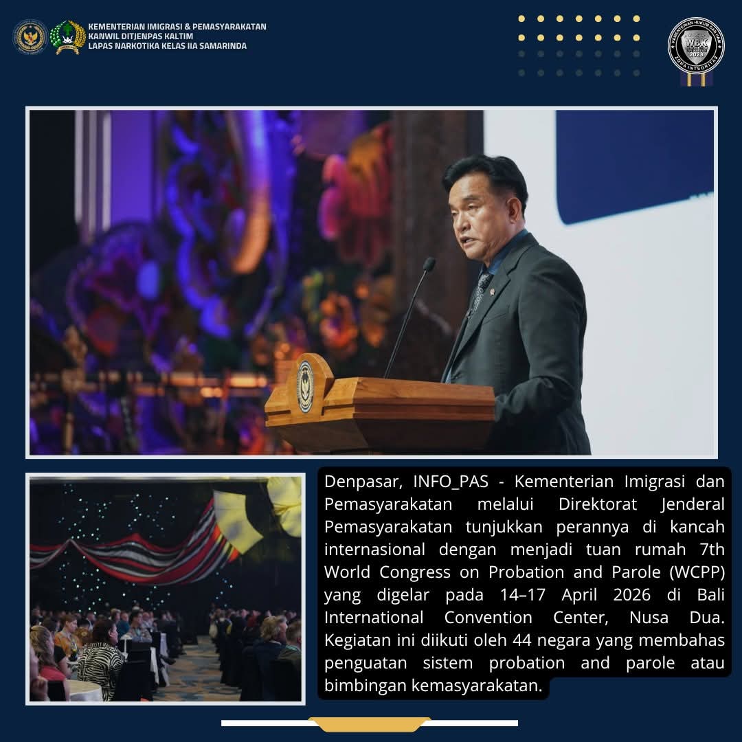 TIMELINES INEWS INVESTIGASI, Denpasar, Kementerian Imigrasi dan Pemasyarakatan melalui Direktorat Jenderal Pemasyarakatan tunjukkan perannya di kancah internasional dengan menjadi tuan rumah 7th World Congress on Probation and Parole (WCPP) yang digelar pada 14–17 April 2026 di Bali International Convention Center, Nusa Dua. Kegiatan ini diikuti oleh 44 negara yang membahas penguatan sistem probation and parole atau bimbingan kemasyarakatan.