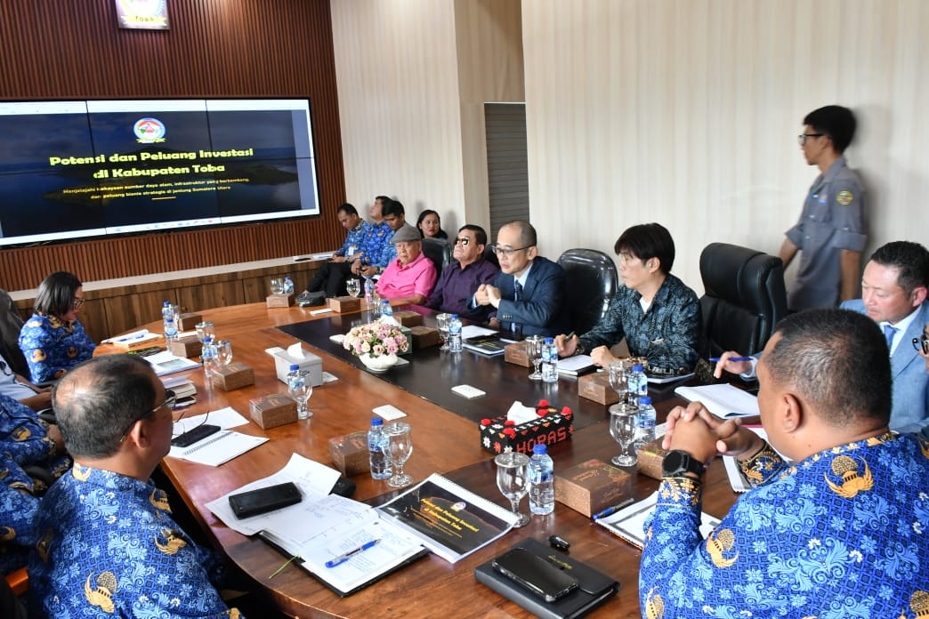 TLii I Sumut I Toba – Dua investor asal Jepang melakukan kunjungan kerja ke Kabupaten Toba pada Kamis (2/4/2026) untuk menjajaki peluang kerjasama investasi. Rombongan yang dipimpin oleh Kato Kosuke, Direktur Utama EBT Japan dan Isono, Direktur Utama Bifudo Partner Nusantara ini disambut langsung oleh Bupati Toba, Effendi Sintong P. Napitupulu, dan Wakil Bupati Audi Murphy O. Sitorus.