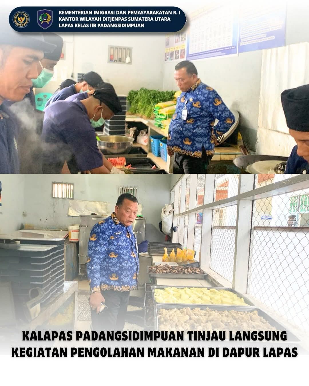 TIMELINES INEWS INVESTIGASI, Padangsidimpuan Kepala Lembaga Pemasyarakatan (Kalapas) Padangsidimpuan, Mathrios Zulhidayat Hutasoit, melakukan peninjauan langsung terhadap kegiatan pengolahan makanan di dapur lapas, sebagai bentuk pengawasan terhadap kualitas pelayanan bagi warga binaan.