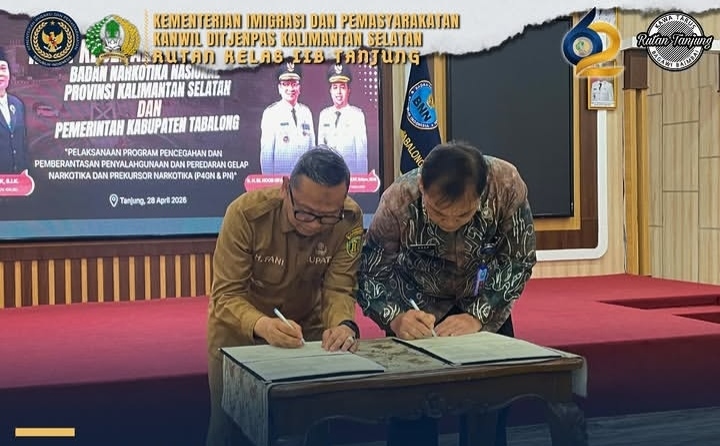 TIMELINES INEWS INVESTIGASI, Tabalong Kepala Kesatuan Pengamanan Rumah Tahanan Negara (Ka.KPR) Rutan Kelas IIB Tanjung, Muhammad Arif Rakhman, menghadiri kegiatan penandatanganan nota kesepakatan antara Badan Narkotika Nasional Provinsi Kalimantan Selatan dengan Pemerintah Kabupaten Tabalong, Selasa (28/04/2026).