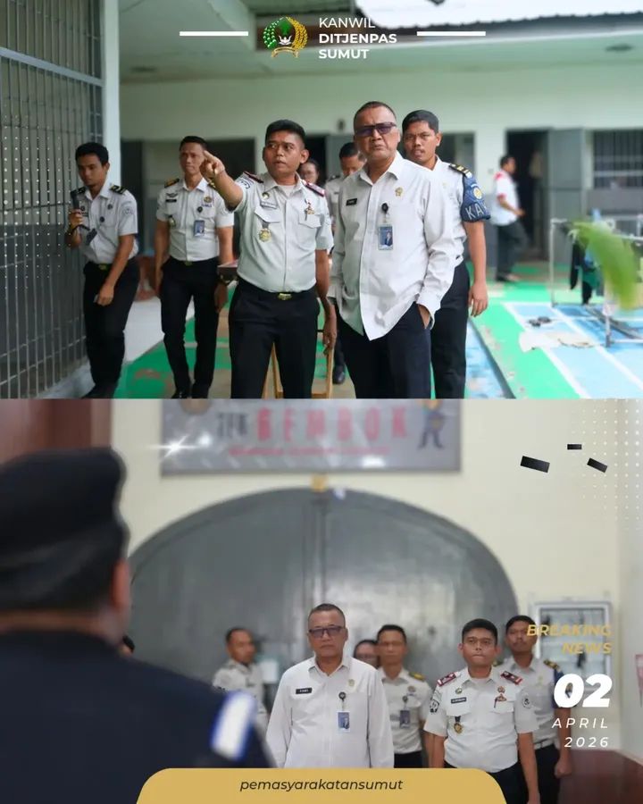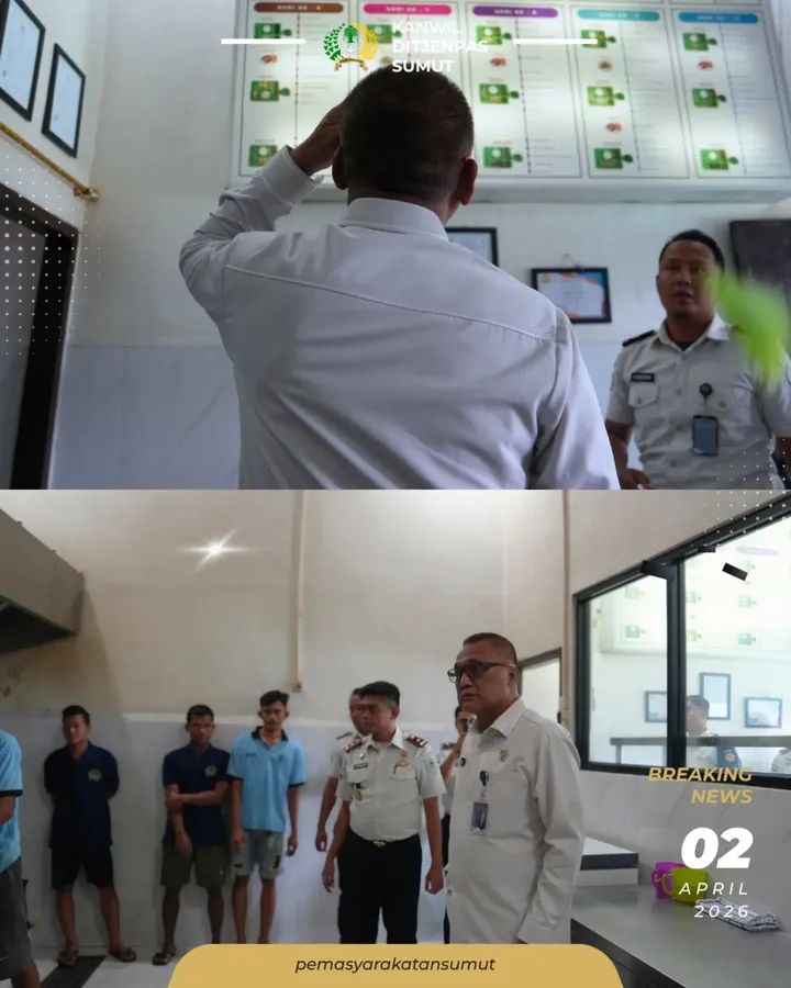 TIMELINES INEWS INVESTIGASI Pangkalan Brandan Kepala Kantor Wilayah Direktorat Jenderal Pemasyarakatan Sumatera Utara, Yudi Suseno, melakukan kunjungan kerja sekaligus inspeksi mendadak (sidak) ke Rumah Tahanan Negara Kelas IIB Pangkalan Brandan pada Kamis (2/4/2026). Kegiatan ini dilakukan untuk memastikan pelayanan serta program pembinaan terhadap warga binaan berjalan optimal sesuai dengan standar operasional prosedur yang berlaku.