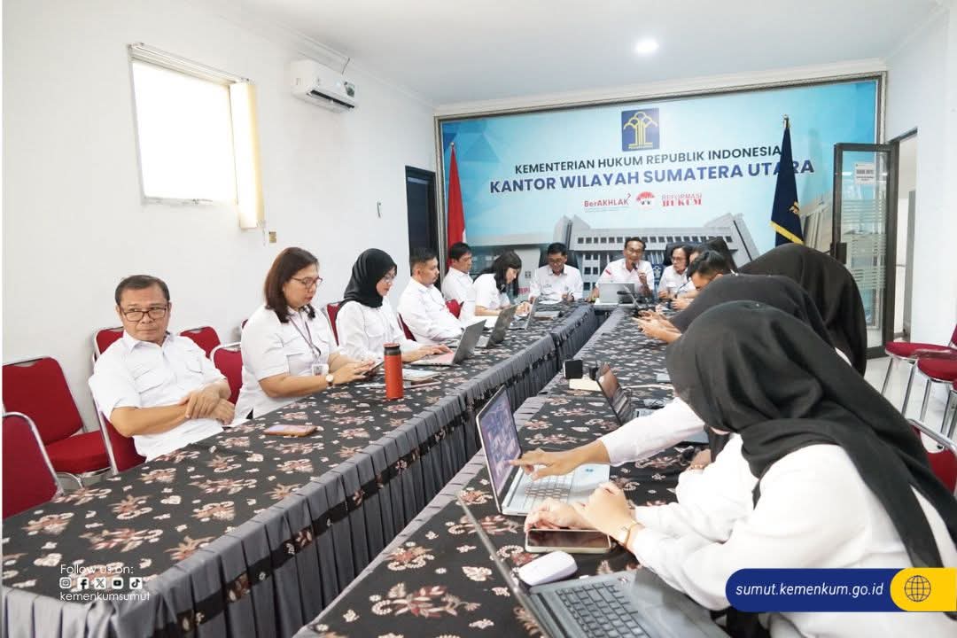 TIMELINES INEWS INVESTIGASI, Medan Kantor Wilayah Kementerian Hukum Republik Indonesia Sumatera Utara melaksanakan rapat pendampingan proses penginputan data dukung dan penilaian mandiri Indeks Reformasi Hukum (IRH) Tahun 2026. Kegiatan tersebut digelar oleh Tim Sekretariat Wilayah (TSW) Kanwil Kemenkum Sumut di Ruang Rapat 2 Divisi Peraturan Perundang-undangan dan Pembinaan Hukum (PPPH), Selasa (15/04/2026).