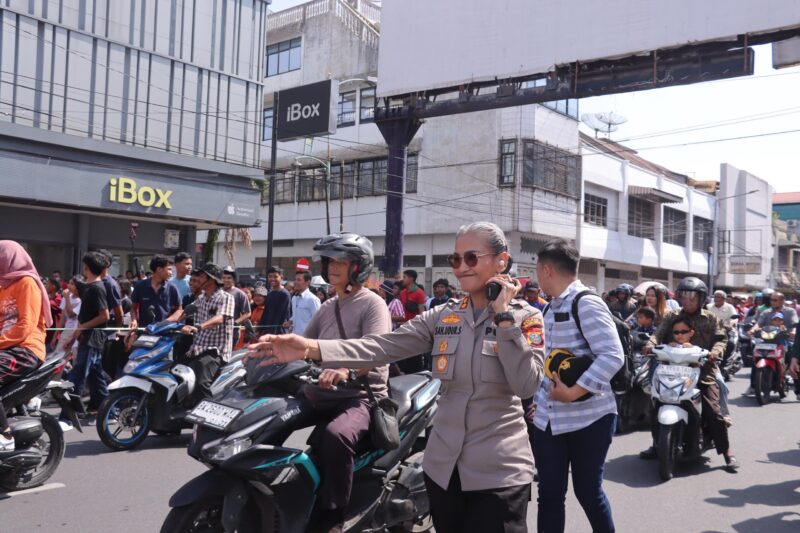 Kapolres Pematangsiantar turun langsung memantau serta mengendalikan pengamanan di lapangan guna memastikan seluruh rangkaian kegiatan berjalan aman dan kondusif.