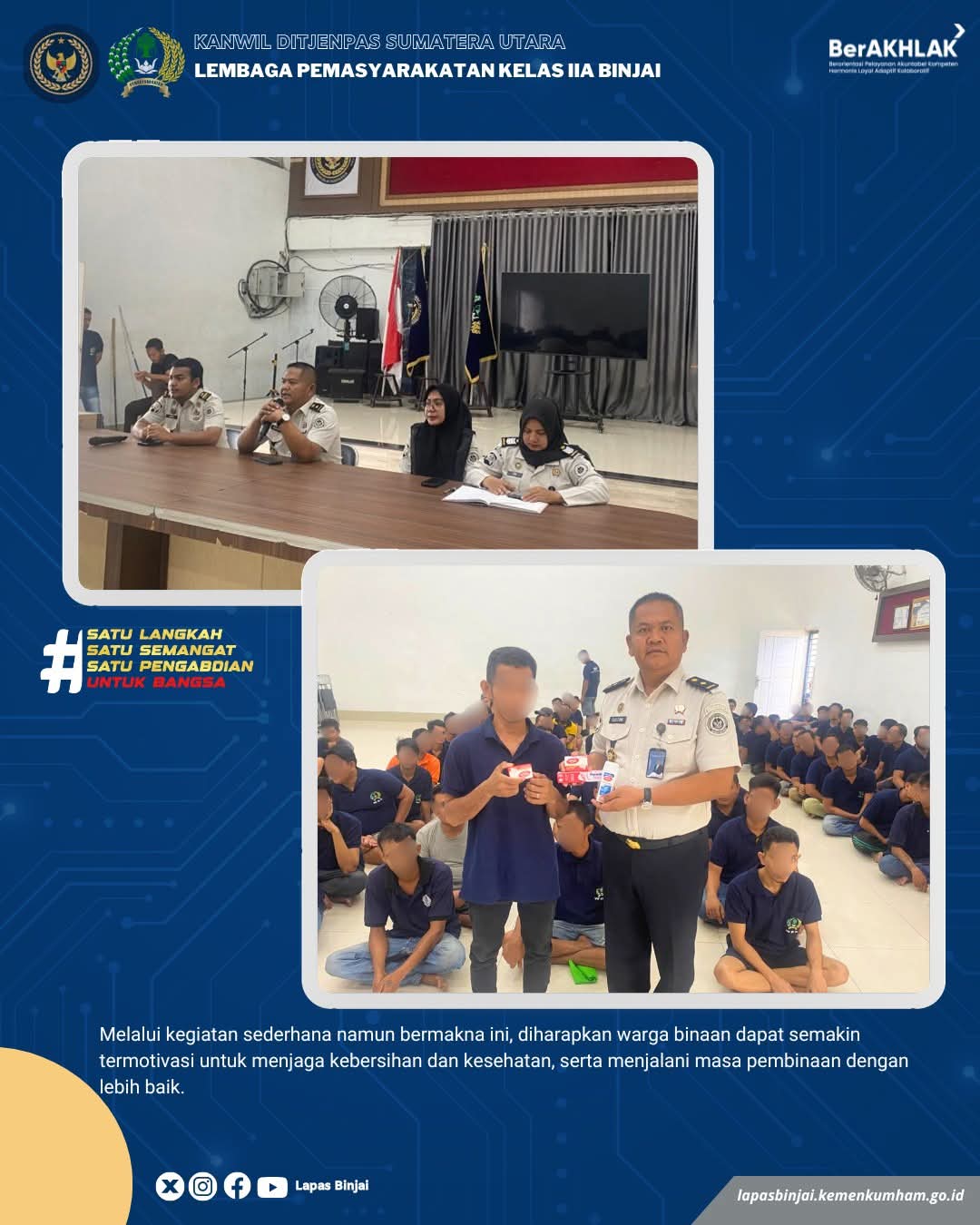 Kepala Lapas Kelas IIA Binjai melalui Kepala Seksi Bimbingan Narapidana dan Anak Didik (Kasi Binadik) Andi Gultom menyampaikan bahwa perhatian terhadap kebersihan diri merupakan bagian penting dalam proses pembinaan.