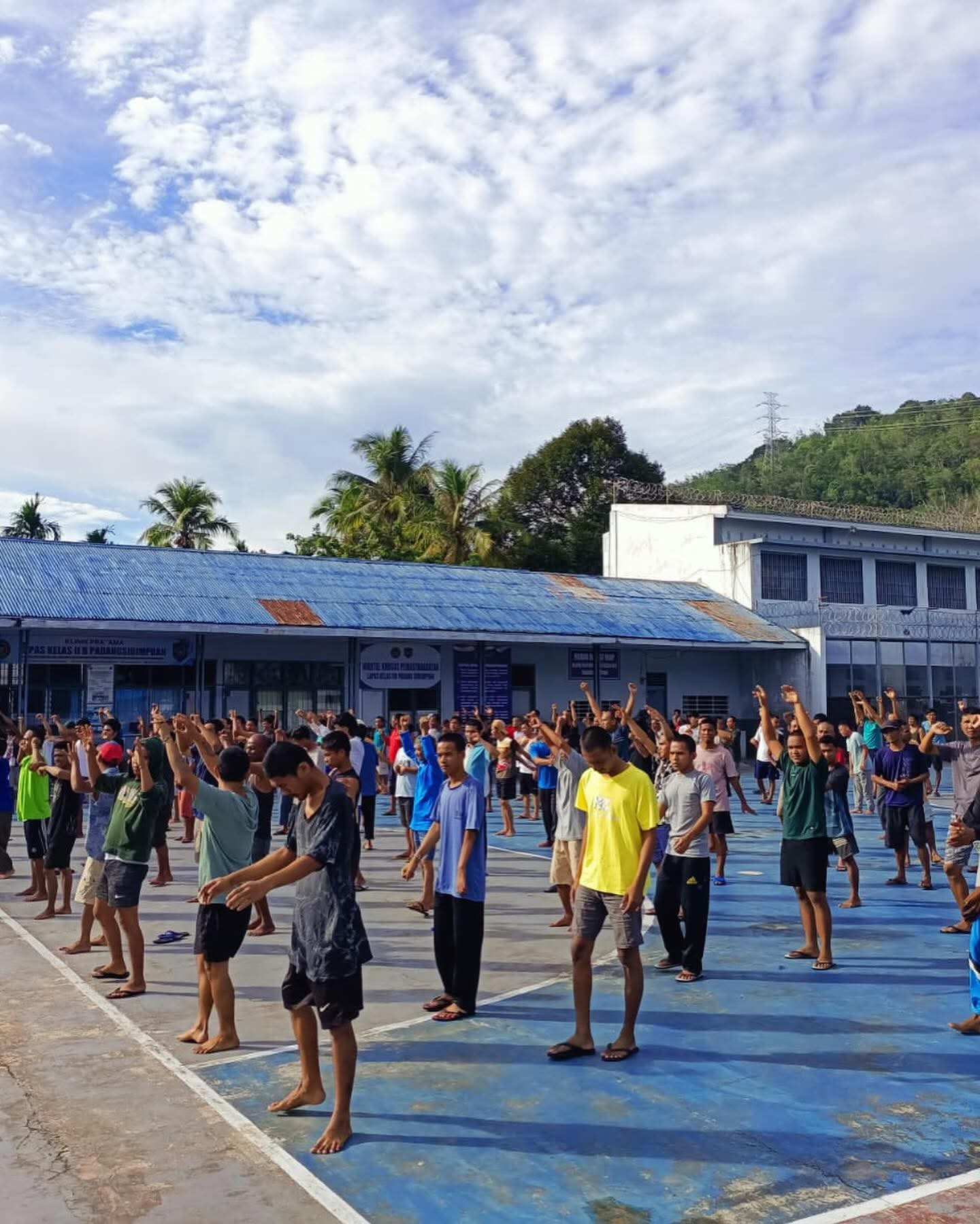 TIMELINES INEWS INVESTIGASI, Padangsidimpuan Lembaga Pemasyarakatan (Lapas) Kelas IIB Padangsidimpuan menggelar kegiatan senam pagi bersama sebagai upaya meningkatkan kesehatan jasmani sekaligus mempererat kebersamaan antarwarga binaan. Kegiatan yang dilaksanakan di halaman Lapas tersebut diikuti dengan antusias oleh warga binaan serta petugas pemasyarakatan.
