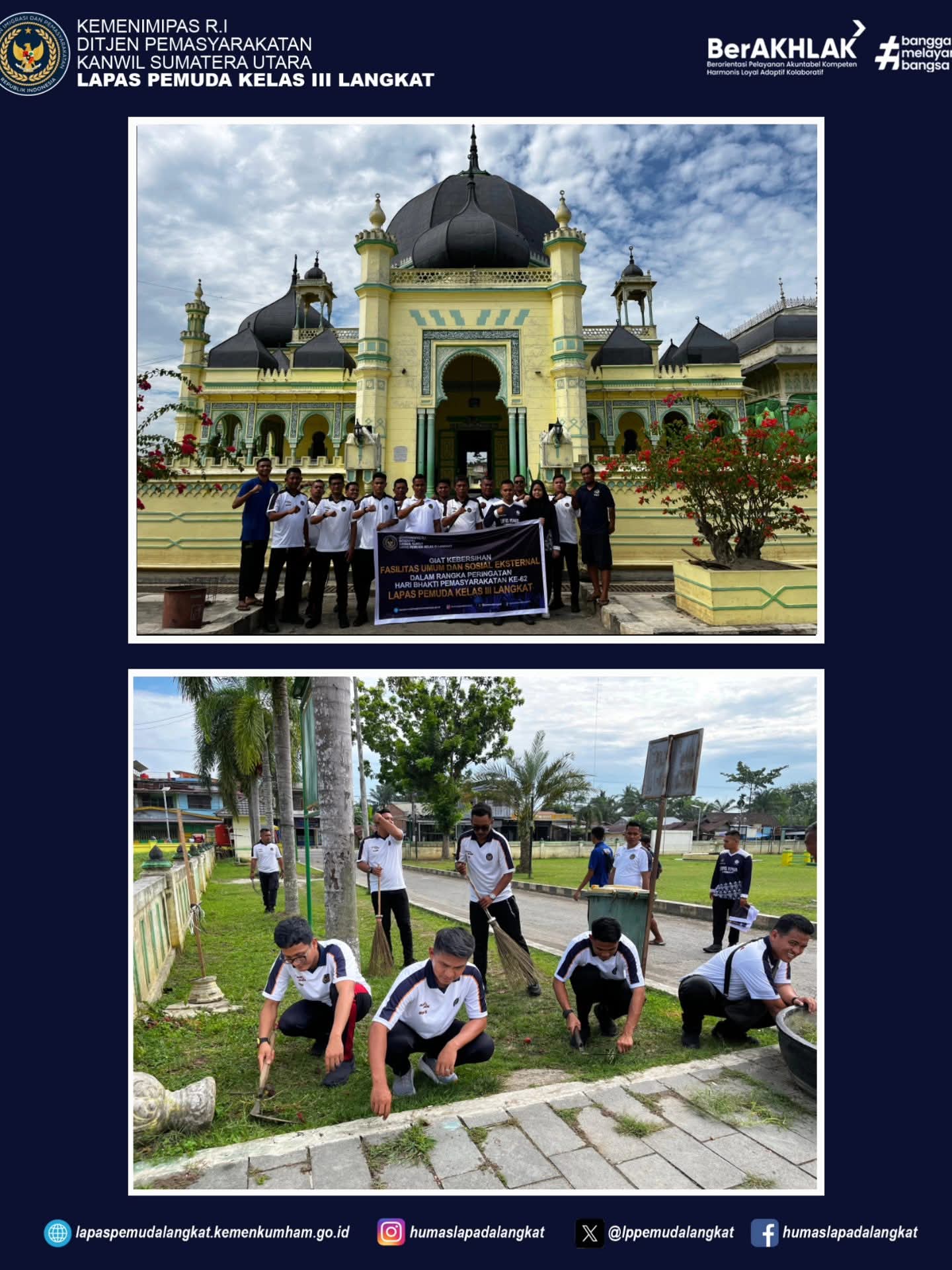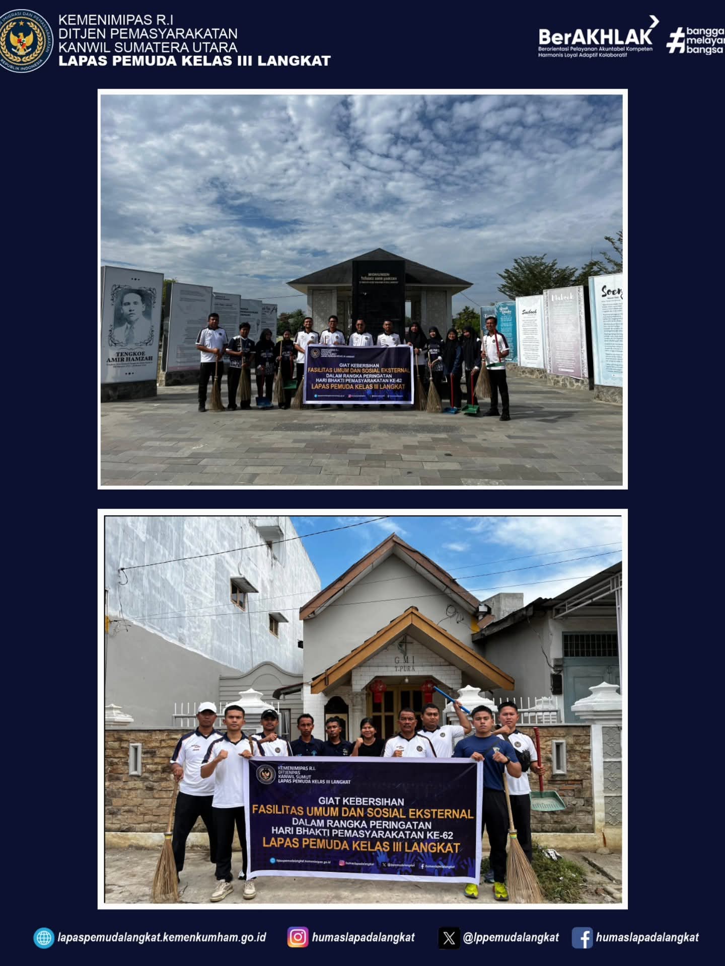 TIMELINES INEWS INVESTIGASI , Langkat Dalam rangka menyemarakkan peringatan Hari Bakti Pemasyarakatan (HBP) ke-62, jajaran Lembaga Pemasyarakatan Pemuda Kelas III Langkat menggelar kegiatan bakti sosial berupa aksi bersih-bersih fasilitas umum di wilayah Tanjung Pura.