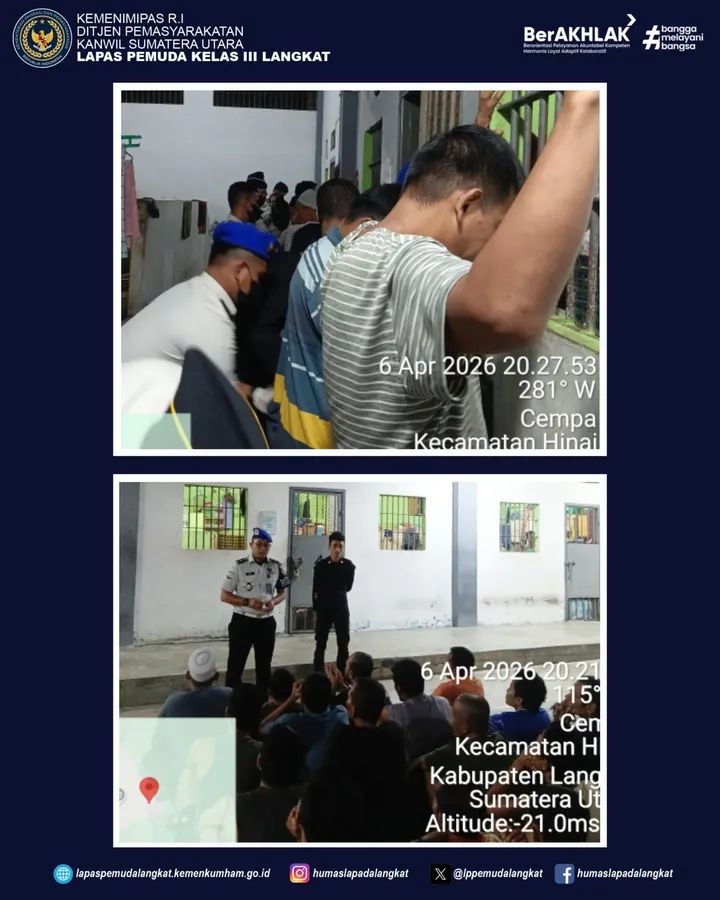 TIMELINES INEWS INVESTIGASI, Langkat Dalam rangka menyambut hari Bhakti Pemasyarakatan ke-62 dan juga peningkatan keamanan dan ketertiban dalam serta memastikan tidak adanya barang terlarang, Lapas Pemuda Langkat Lakukan Deteksi Dini Razia, Senin (06/04/2026).