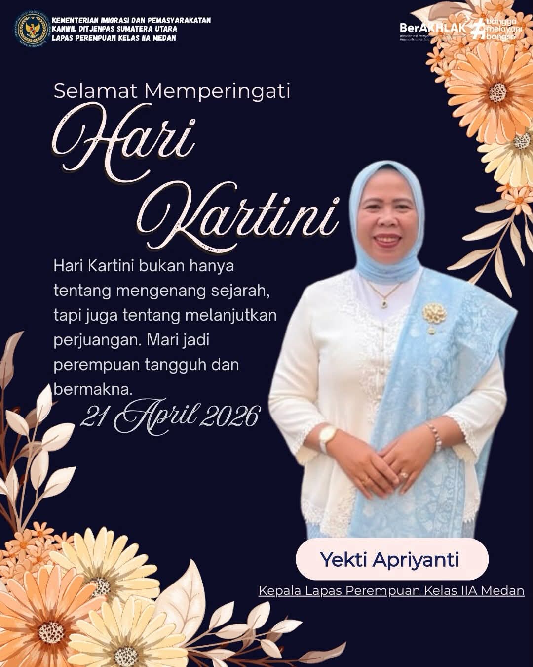 TIMELINES INEWS INVESTIGASI, Medan Dalam rangka memperingati Hari Kartini yang jatuh pada 21 April 2026, segenap jajaran keluarga Lembaga Pemasyarakatan (Lapas) Perempuan Kelas IIA Medan menyampaikan ucapan selamat kepada seluruh perempuan di Indonesia.