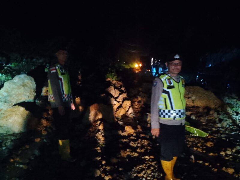 Tapaktuan – Respons cepat ditunjukkan oleh jajaran Polsek Bakongan Timur bersama personel Polres Aceh Selatan Polda Aceh dalam menangani peristiwa tanah longsor yang menutup badan Jalan Nasional lintas Tapaktuan–Subulussalam, tepatnya di kawasan pegunungan Desa Sawah Tingkem, Kecamatan Bakongan Timur. Kejadian tersebut terjadi sekira pukul 23.30 WIB akibat tingginya intensitas curah hujan yang mengguyur wilayah tersebut, Rabu, 22 April 2026.