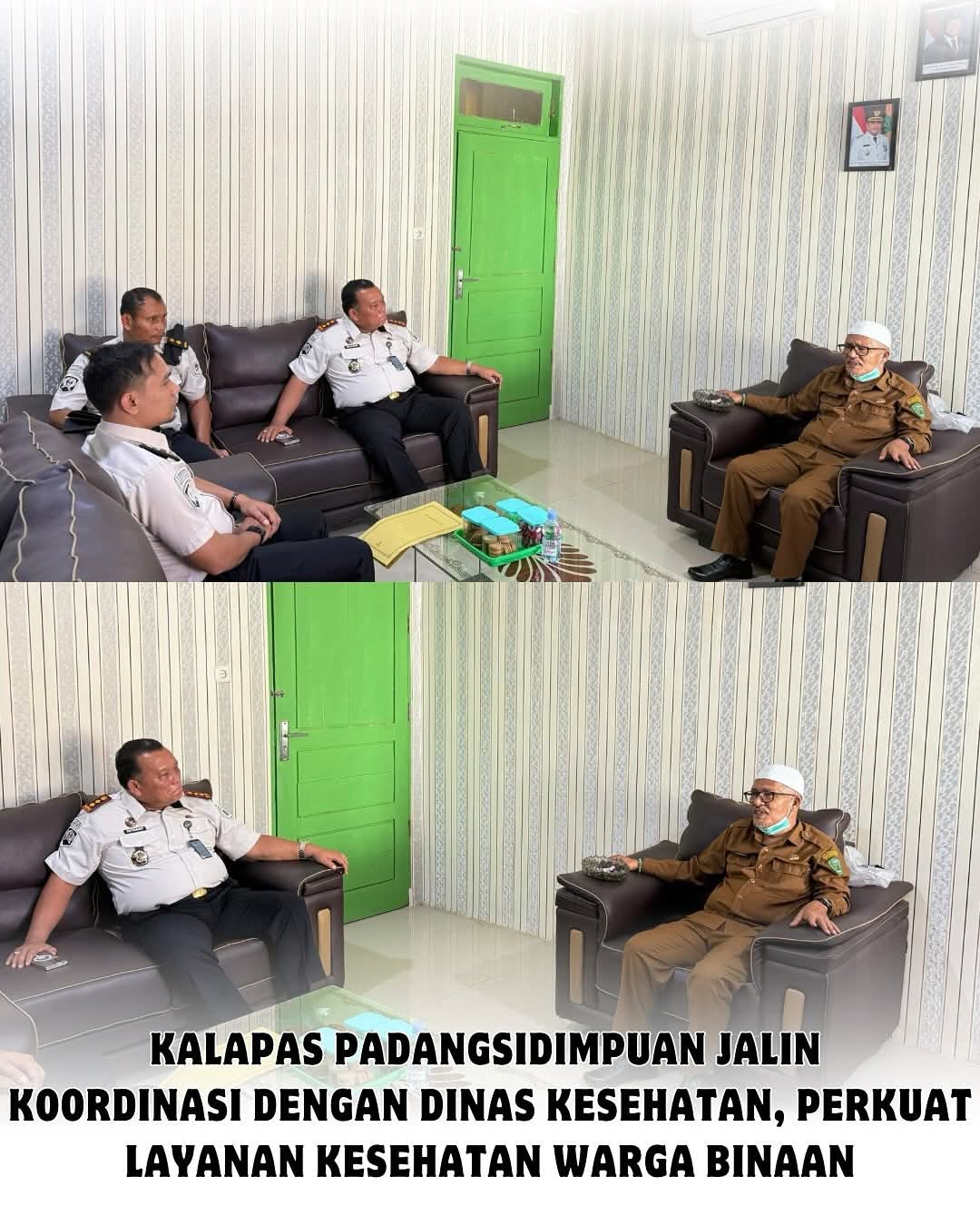 TIMELINES INEWS INVESTIGASI, Padangsidimpuan, Kepala Lembaga Pemasyarakatan (Kalapas) Padangsidimpuan, Mathrios Zulhidayat Hutasoit melakukan koordinasi intensif dengan Kepala Dinas Kesehatan Kota Padangsidimpuan guna meningkatkan kualitas pelayanan kesehatan bagi warga binaan. Pertemuan ini menjadi langkah strategis dalam memastikan terpenuhinya hak dasar warga binaan, khususnya di bidang kesehatan.
