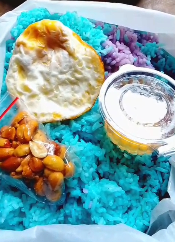 Sorotan paling mencolok datang dari temuan nasi berwarna tak lazim. Di satu sekolah, nasi yang dibagikan kepada siswa tampak kebiruan. Sementara di sekolah lain, nasi berwarna ungu.