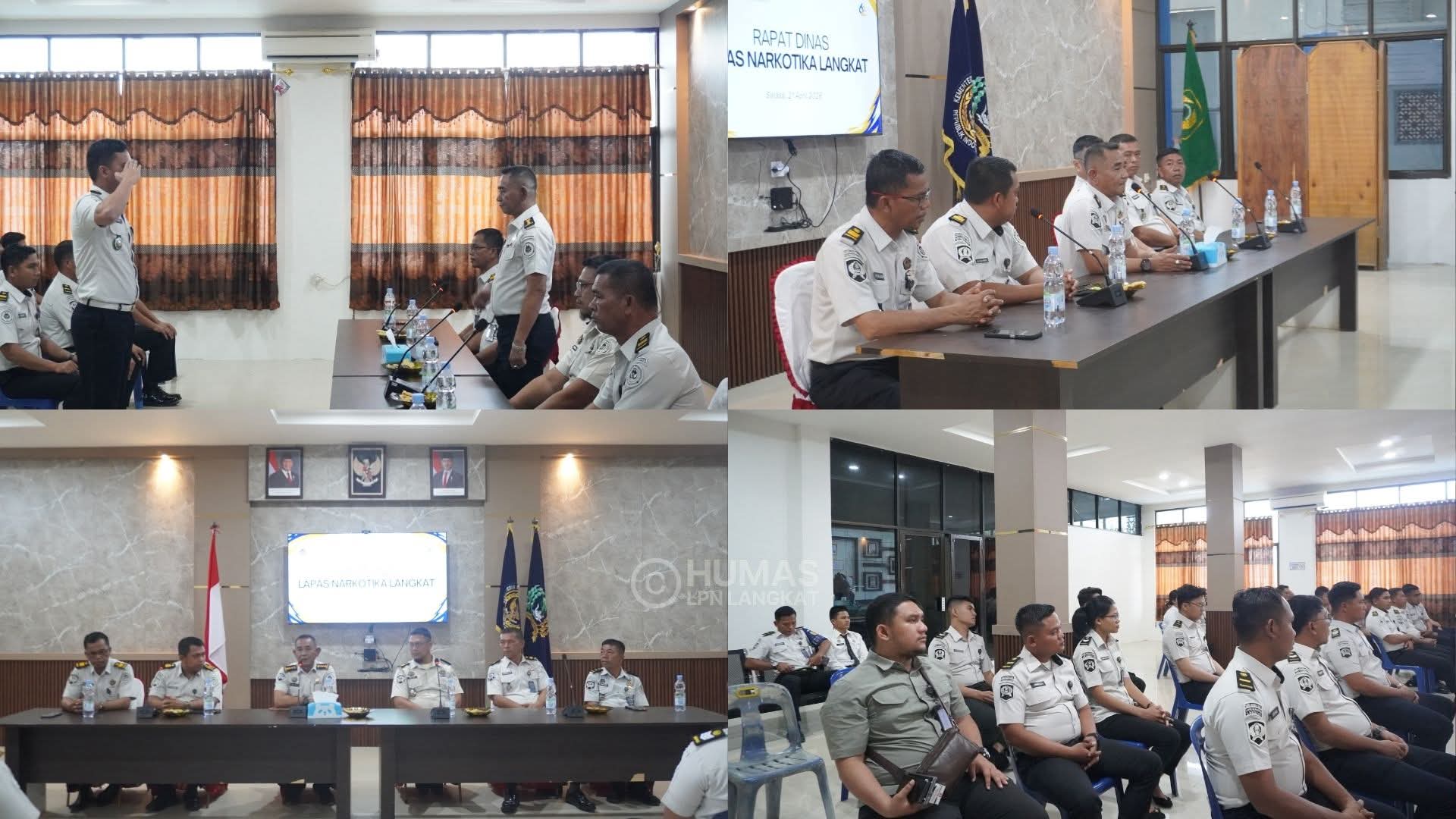 TIMELINES INEWS INVESTIGASI, Langkat, 21 April 2026 Pelaksana Harian (Plh.) Kepala Lembaga Pemasyarakatan (Kalapas) Narkotika Kelas IIA Langkat, Indra Kesuma, memimpin rapat dinas bersama seluruh jajaran petugas yang digelar di aula kantor, Selasa (21/4/2026).
