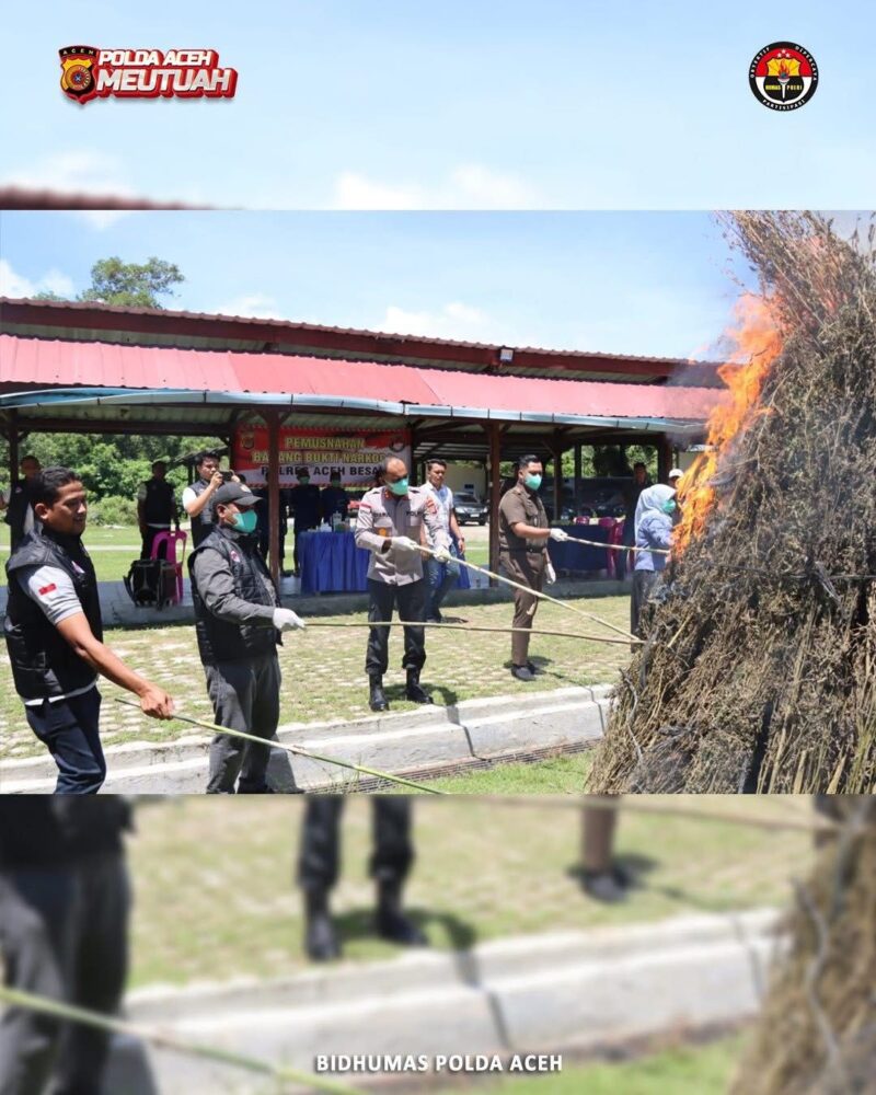 TLii | ACEH BESAR — Komitmen dalam memberantas peredaran narkotika kembali ditegaskan oleh jajaran Kepolisian Resor (Polres) Aceh Besar melalui kegiatan pemusnahan barang bukti hasil tindak pidana narkotika yang digelar di Lapangan Polres Aceh Besar, Kamis (16/04/2026).