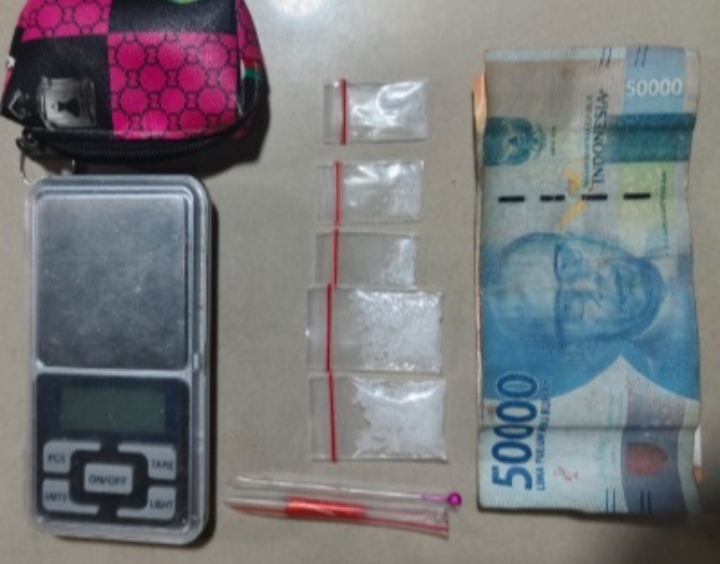 Tersangka yang diamankan berinisial APT (18). Dari tangan pelaku, petugas menyita barang bukti berupa lima plastik klip berisi sabu, dua pipet ujung runcing, satu buah dompet, satu unit timbangan elektrik, serta uang tunai sebesar Rp60.000.