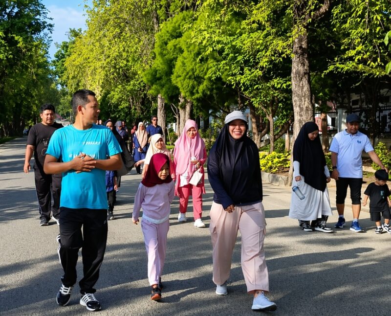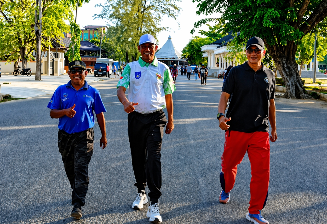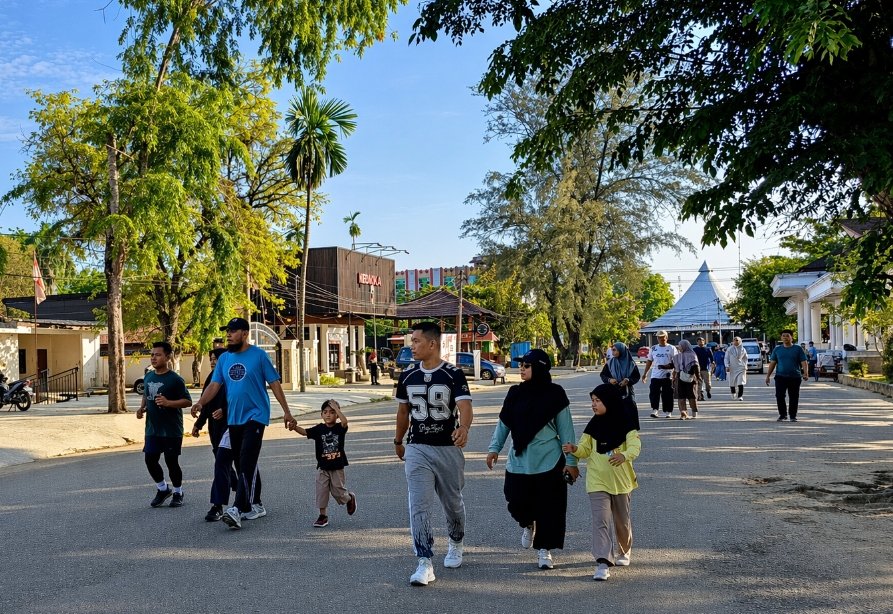 Sejak fajar menyingsing, kawasan ini berubah menjadi ruang kebersamaan. Anak-anak berlarian riang, para orang tua berjalan santai, sementara kelompok masyarakat tampak antusias mengikuti senam sehat. Tawa dan sapa hangat antarwarga menciptakan suasana yang tidak hanya hidup, tetapi juga penuh keakraban.