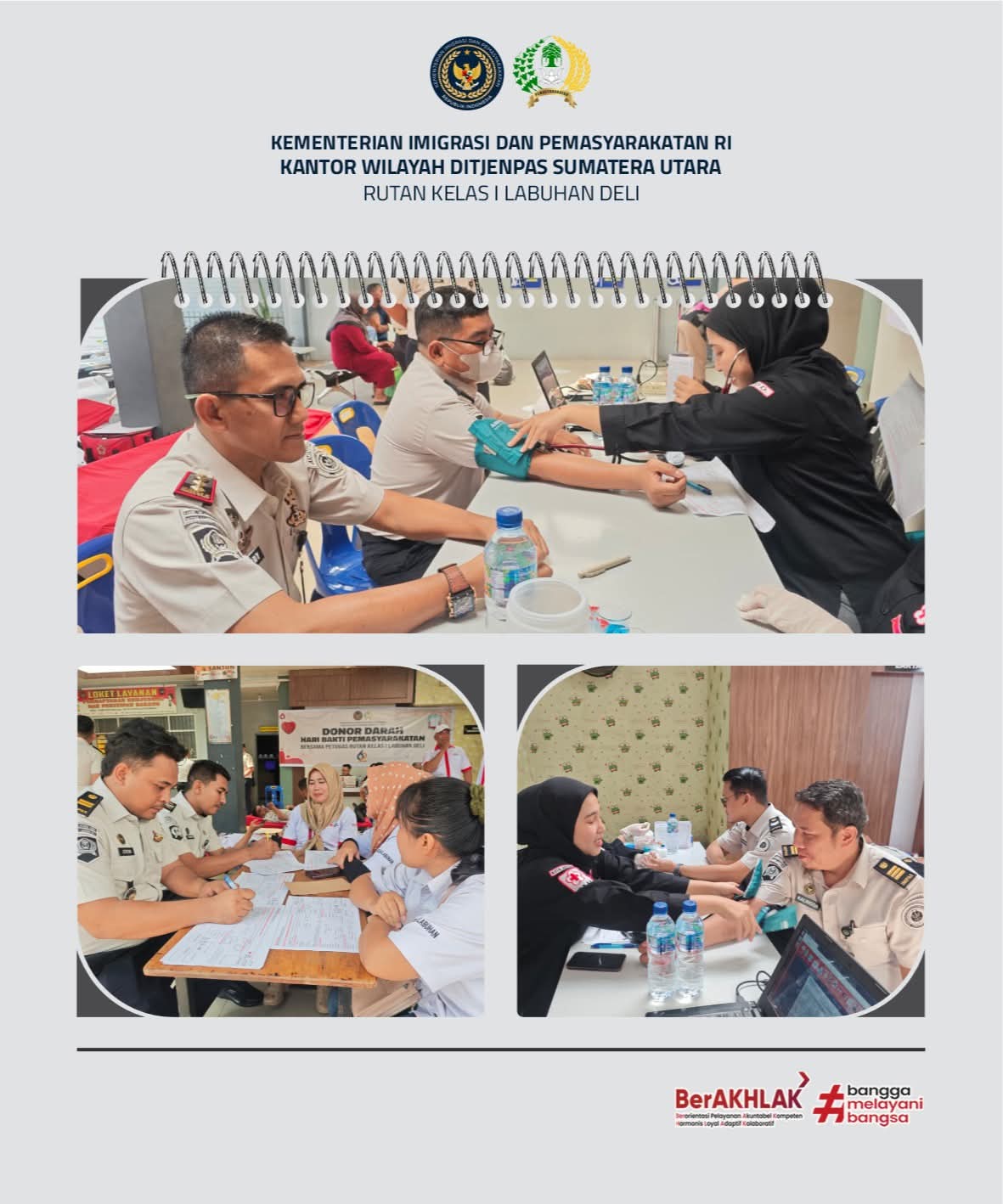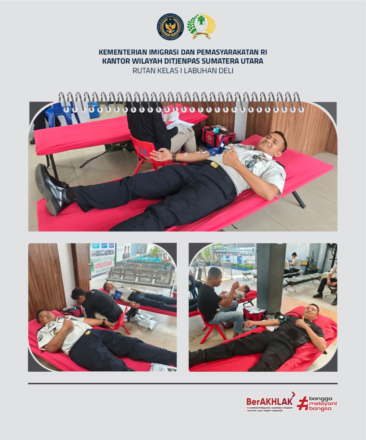 TIMELINES INEWS INVESTIGASI, Medan Dalam rangka memperingati Hari Bhakti Pemasyarakatan (HBP) ke-62, Rumah Tahanan Negara (Rutan) Kelas I Labuhan Deli menggelar kegiatan donor darah bekerja sama dengan Palang Merah Indonesia (PMI) Kota Medan, Kamis (16/04/2025). Kegiatan yang dilaksanakan di teras Rutan tersebut diikuti oleh seluruh pegawai sebagai bentuk kepedulian sosial dan kemanusiaan.