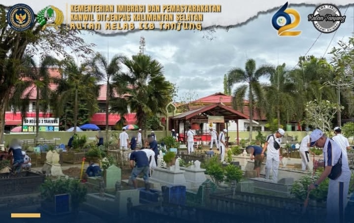 TIMELINES INEWS INVESTIGASI , Tanjung, 7 April 2026 Dalam rangka memperingati Hari Bakti Pemasyarakatan (HBP) ke-62, Rumah Tahanan Negara (Rutan) Kelas IIB Tanjung melaksanakan kegiatan bakti sosial berupa aksi bersih-bersih fasilitas umum di lingkungan sekitar satuan pemasyarakatan. Kegiatan tersebut dilaksanakan di Mushalla Al Falah dan area Kuburan Muslimin Tanjung dengan melibatkan pejabat struktural, petugas Rutan Tanjung, warga binaan, serta petugas kebersihan dari Dinas Lingkungan Hidup Kabupaten Tabalong.