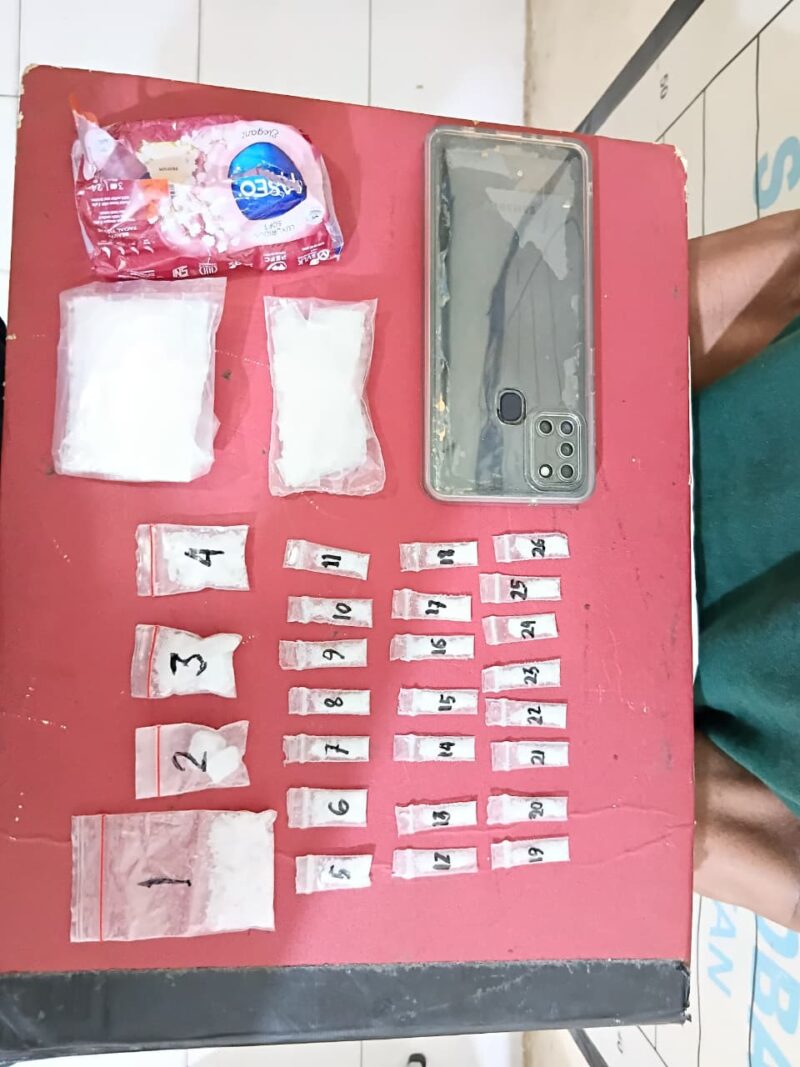 Saat berada di Desa Pulo Paya, petugas menghentikan kendaraan yang ditumpangi pelaku. Setelah dilakukan pemeriksaan dan penggeledahan, ditemukan barang bukti berupa 26 bungkus narkotika jenis sabu yang disembunyikan dalam tas pelaku dengan balutan tisu. Dari hasil penimbangan, total berat bruto barang haram tersebut mencapai 14,93 gram. Selain itu, turut diamankan satu unit ponsel Android serta plastik klip yang diduga digunakan untuk mengemas narkotika.