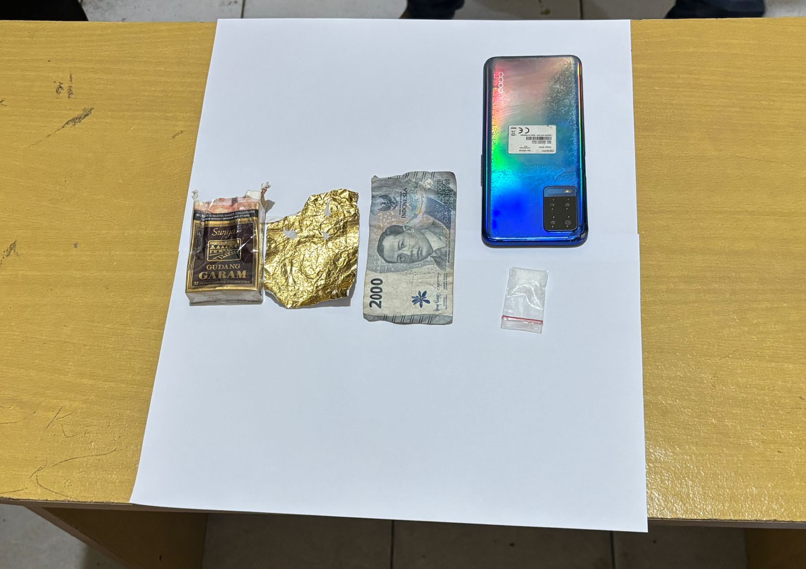 “Tim opsnal berhasil mengamankan barang bukti berupa 1 (satu) paket / plastik klip ukuran sedang berisi narkotika jenis Sabu, dengan berat kotor / Bruto : 1,35 (satu koma tiga lima) gram, 1 (satu) lembar kertas timah rokok warna kuning, 1 (satu) bungkus rokok merk surya gudang garam, 1 (satu) lembar uang tunai Rp 2.000,- (dua ribu rupiah), 1 (satu) unit Handphone merk OPPO A-54 warna biru, nomor simcard : 0882-0172-7xxx,