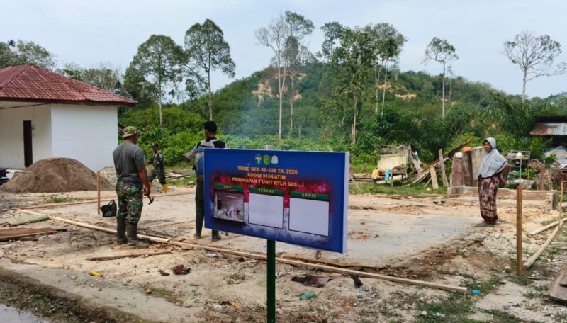 Aceh Timur – Program TNI Manunggal Membangun Desa (TMMD) Reguler ke-128 mulai menunjukkan progres nyata. Personel Satgas TMMD melaksanakan pemasangan bouwplang sebagai tahap awal pembangunan Rumah Tidak Layak Huni (RTLH) milik Ibu Rugaiyah, di Desa Alue Canang, Kecamatan Birem Bayeun, Kabupaten Aceh Timur, Selasa (21/04/2026).