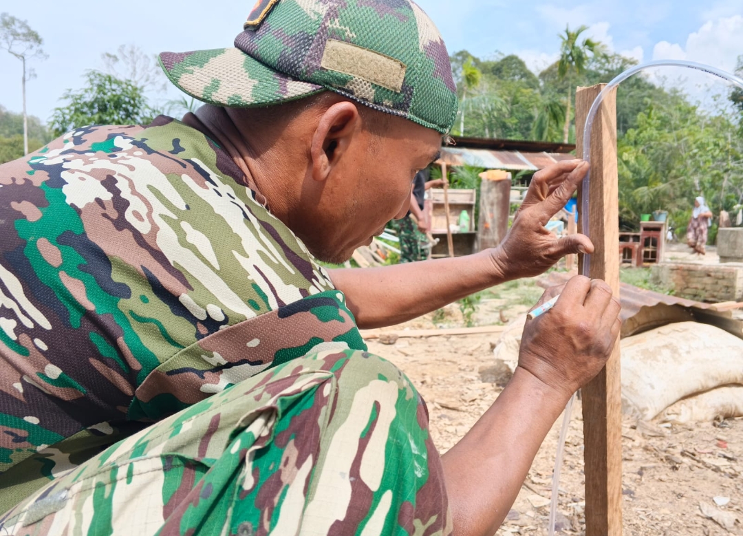 Di lokasi, personel Satgas terlihat bekerja bersama masyarakat setempat, menandai titik-titik pondasi dengan penuh ketelitian. Kebersamaan antara TNI dan warga menjadi cerminan nyata semangat gotong royong dalam mendukung percepatan pembangunan di wilayah pedesaan.