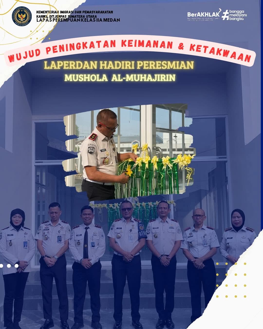 TIMELINES INEWS INVESTIGASI , Medan, Kepala Lembaga Pemasyarakatan Perempuan Kelas IIA Medan menghadiri kegiatan peresmian Mushola Al-Muhajirin yang telah selesai dibangun dan kini mulai difungsikan sebagai sarana ibadah bagi pegawai dan masyarakat sekitar. Senin,6/4.