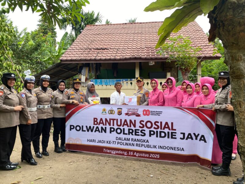 Timelinesinews.com.PIDIE JAYA – Dalam rangka memperingati Hari Jadi Polisi Wanita (Polwan) Republik Indonesia ke-77 tahun 2025, Polwan Polres Pidie Jaya melaksanakan kegiatan bantuan sosial (baksos) kepada masyarakat kurang mampu di wilayah hukum Polres Pidie Jaya, Sabtu (16/8/2025).