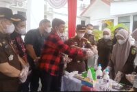 TLii|SUMUT|SIANTAR|Kapolres Pematangsiantar AKBP Sah Udur T.M. Sitinjak SH. SIK. MH pimpin pemusnahan barang bukti narkotika jenis ganja seberat 1.906,85 gram didepan ruangan Satuan Reserse…