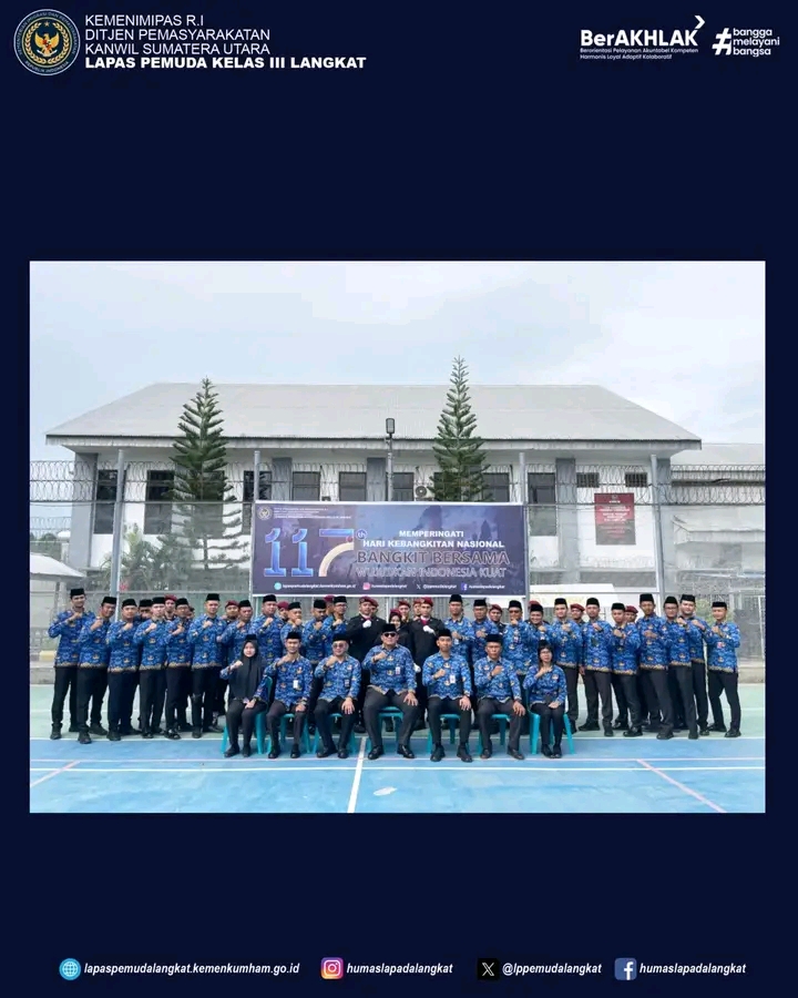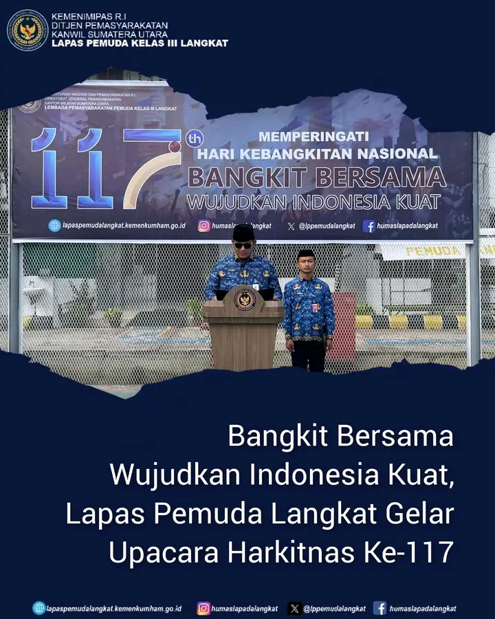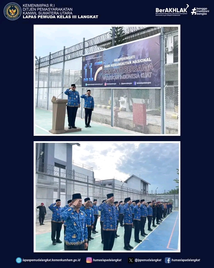 TIMELINES INEWS INVESTIGASI Langkat Lembaga Pemasyarakatan Pemuda Kelas III Langkat menggelar upacara peringatan Hari Kebangkitan Nasional ke-117 dengan tema “Bangkit Bersama Wujudkan Indonesia Kuat.” Selasa (10/05/2025). Upacara berlangsung khidmat di lapangan upacara gedung II Lapas Pemuda Langkat.