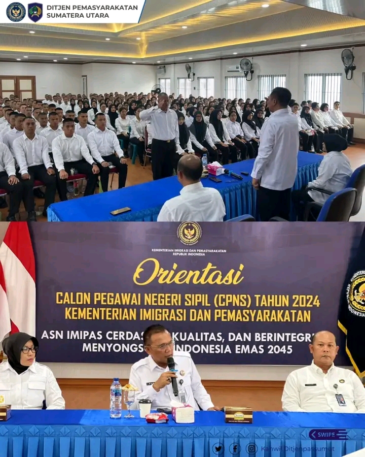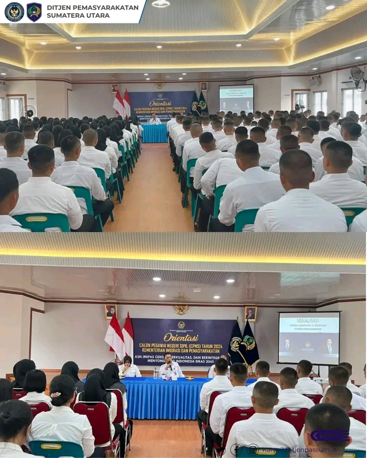Kegiatan orientasi ini merupakan bagian dari upaya Kanwil Ditjenpas Sumatera Utara untuk melahirkan ASN yang siap bertugas secara profesional, adaptif terhadap regulasi terbaru, serta mampu menjawab tantangan pemasyarakatan di era modern, Pungkasnya.