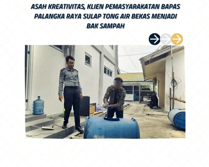 Diprakarsai oleh Kepala Bapas Kelas I Palangka Raya, Theo Adrianus, kegiatan ini memanfaatkan tong air bekas yang diolah menjadi bak sampah untuk kebutuhan lingkungan Bapas. Proses daur ulang ini dikerjakan langsung oleh salah satu Klien Pemasyarakatan di bawah bimbingan Pembimbing Kemasyarakatan Pertama, Aris Fadillah.