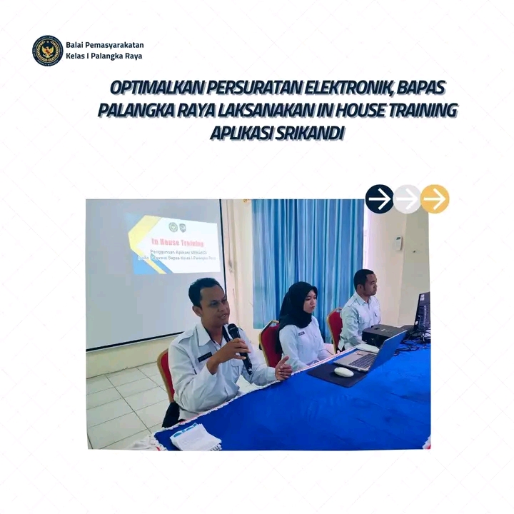 TIMELINES INEWS INVESTIGASI, Palangka Raya, 17 Juni 2025 Dalam rangka mendukung modernisasi dan digitalisasi pengelolaan arsip di lingkungan Kementerian Imigrasi dan Pemasyarakatan, Balai Pemasyarakatan (Bapas) Palangka Raya menyelenggarakan In House Training penggunaan Aplikasi Srikandi. Kegiatan ini dilaksanakan di aula kantor Bapas dan diikuti oleh seluruh pegawai dengan penuh semangat.