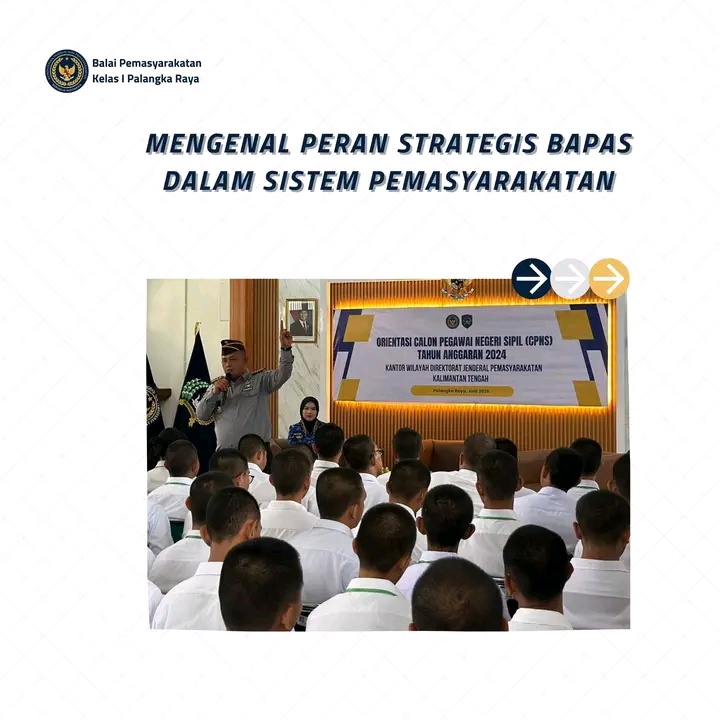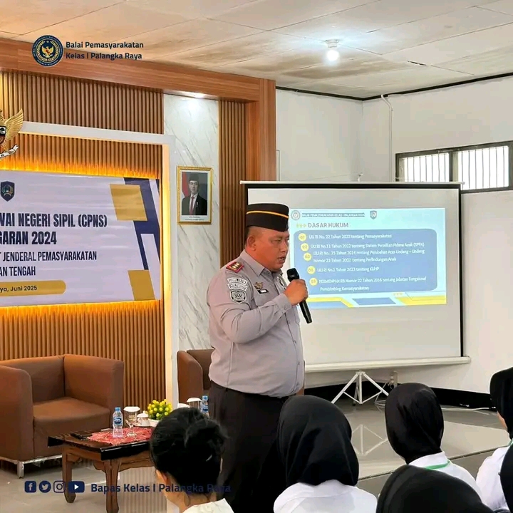 TIMELINES INEWS INVESTIGASI, Palangka raya 16 Juni 2025 Dalam rangka kegiatan orientasi bagi Calon Pegawai Negeri Sipil (CPNS), Kepala Balai Pemasyarakatan (Bapas) Palangkaraya, Theo Adrianus, hadir sebagai narasumber dengan membawakan materi bertajuk “Tugas dan Fungsi Balai Pemasyarakatan”. Kegiatan ini menjadi bagian dari pembekalan awal untuk membentuk CPNS yang profesional, berintegritas, dan siap mengabdi kepada negara.